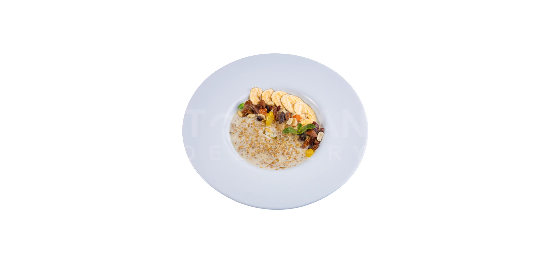 Вівсяна каша – це класична сніданкова страва, яка поєднує в собі ніжність молока та вівсянки. Легкий солодкий смак цукру та вершкове масло створюють ідеальну текстуру, а суміш горіхів та цукатів додає страві особливого аромату та хрусткості. Ідеальний вибір для початку дня, який зарядить енергією та насолодою.